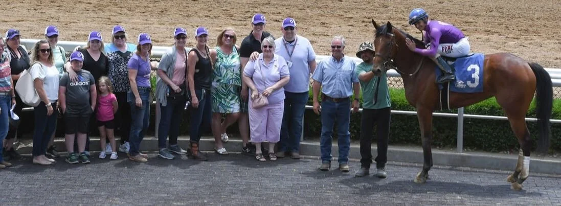 Dyana and her fans in the winner's circle after her first race June 15, 2021 at Belterra Park in Cincinnati.
